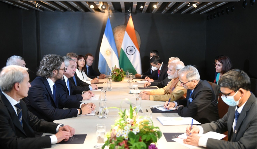 Al término de la reunión bilateral que el presidente Alberto Fernández mantuvo hoy con el primer ministro de la India, Narendra Modi, en el marco de la Cumbre de Líderes del G7 que se celebra en Alemania, el canciller Santiago Cafiero señaló que “este año ha sido un año en el que vemos como diferentes productos se siguen instalando en la India, como el aceite de girasol y la harina de soja, con exportaciones récord, con lo cual pensamos que en 2022 vamos a volver a romper la marca récord del año pasado”.