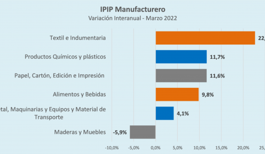 Productos químicos y plásticos. El rubro ascendió 11,7% anual y 6,5% mensual. La situación fue buena para las empresas, la demanda estuvo firme y las consultas para futuros pedidos se mantuvieron activas. Hubo problemas en el abastecimiento de combustibles y las empresas manifestaron que las subas de precios actuales todavía en marzo no tuvieron tanta incidencia en los costos, pero esperan que sí impacte desde abril.